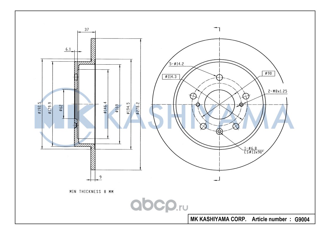 | MK KASHIYAMA | G9004 | Диск тормозной задний[278,2x9] | ||