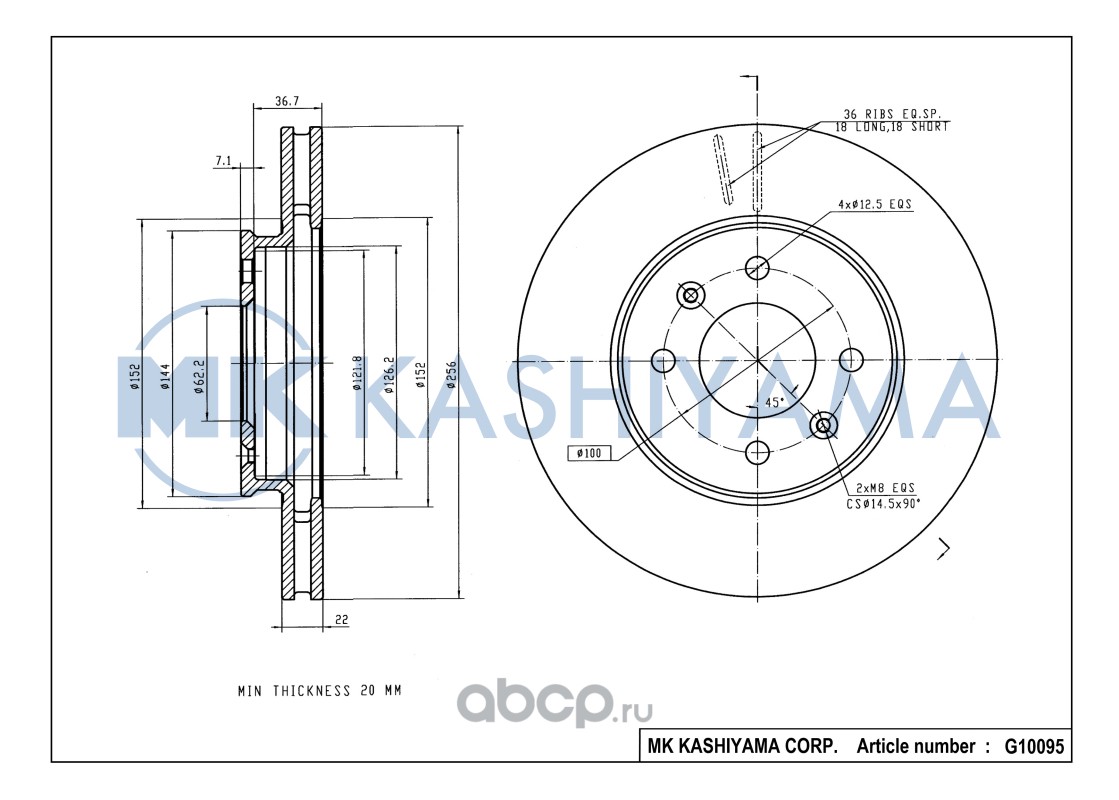 | MK KASHIYAMA | G10095 | Диск тормозной передний[256x22] | ||