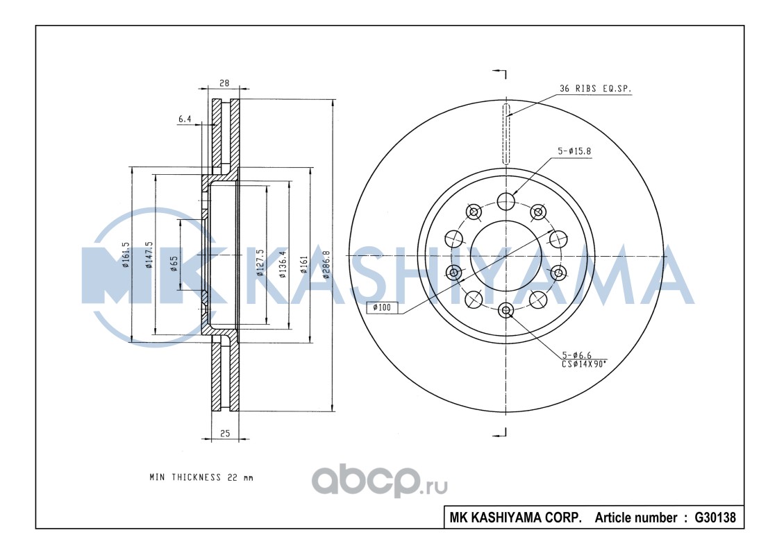 | MK KASHIYAMA | G30138 | Диск тормозной передний[286,8x25] | ||