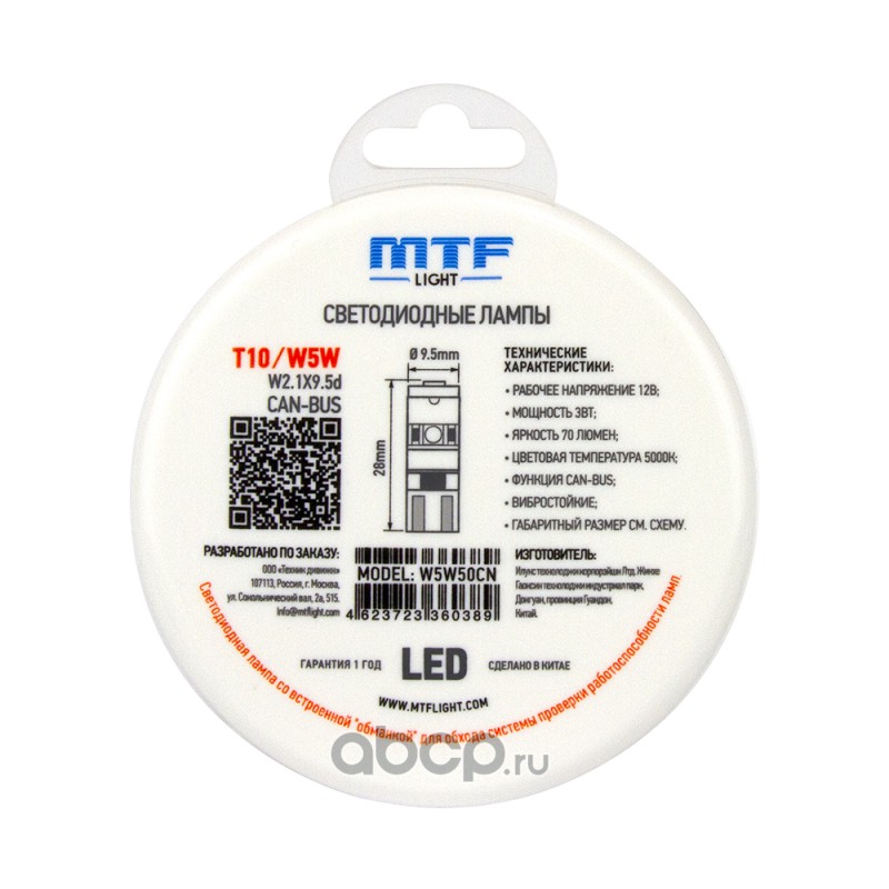| MTF Light | W5W50CN | Светодиодные лампы | ||