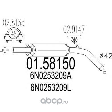 | MTS | 0158150 | Средний глушитель выхлопных газов | ||