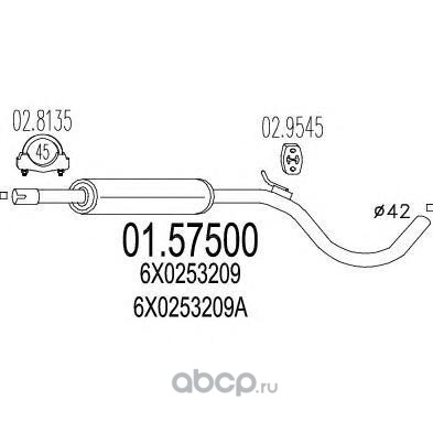 | MTS | 0157500 | Средний глушитель выхлопных газов | ||