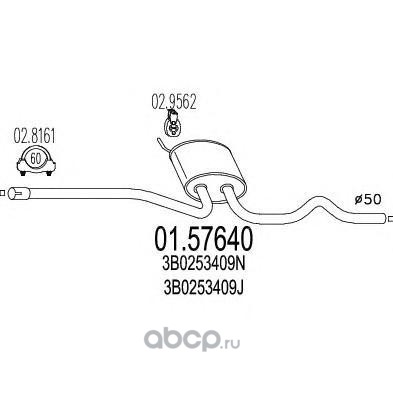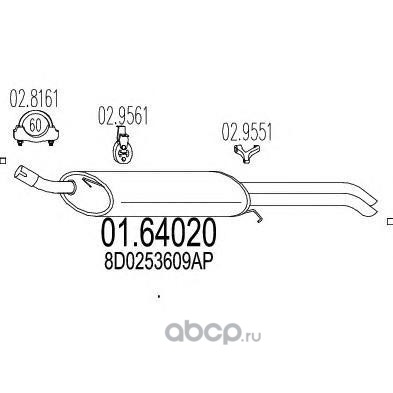 | MTS | 0157640 | Средний глушитель выхлопных газов | ||