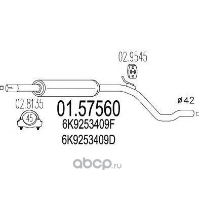 | MTS | 0157570 | Средний глушитель выхлопных газов | ||