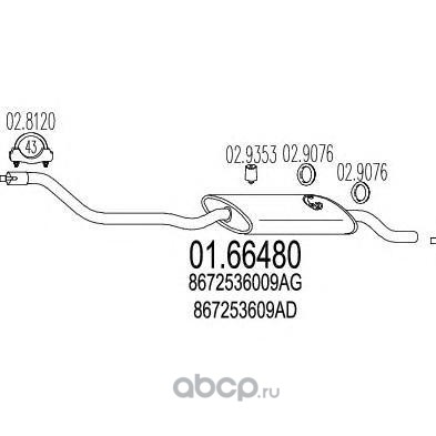 | MTS | 0166480 | Глушитель выхлопных газов конечный | ||