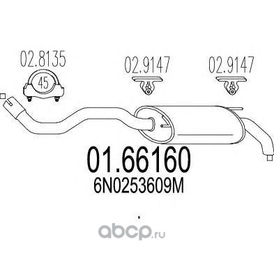| MTS | 0166160 | Глушитель выхлопных газов конечный | ||