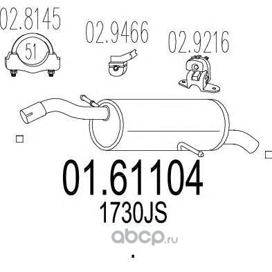 | MTS | 0161173 | Глушитель выхлопных газов конечный | ||