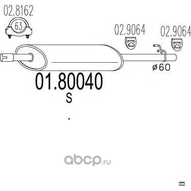 | MTS | 0180040 | Средний глушитель выхлопных газов | ||