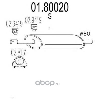 | MTS | 0190160 | Глушитель выхлопных газов конечный | ||