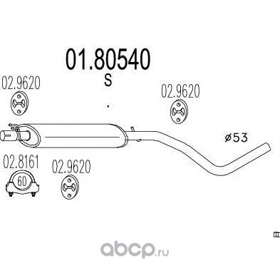 | MTS | 0180540 | Средний глушитель выхлопных газов | ||