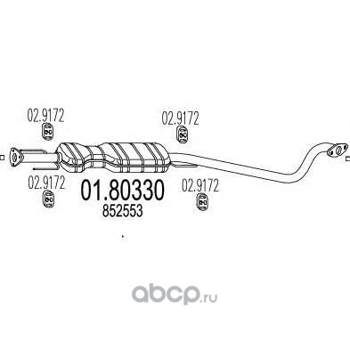 | MTS | 0180330 | Средний глушитель выхлопных газов | ||
