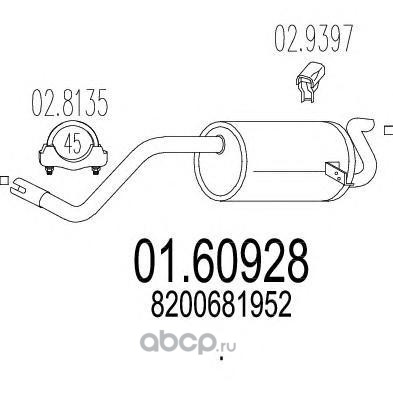 | MTS | 0160928 | Глушитель выхлопных газов конечный | ||
