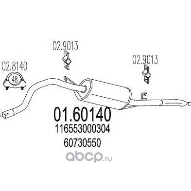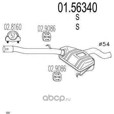 | MTS | 0156340 | Средний глушитель выхлопных газов | ||