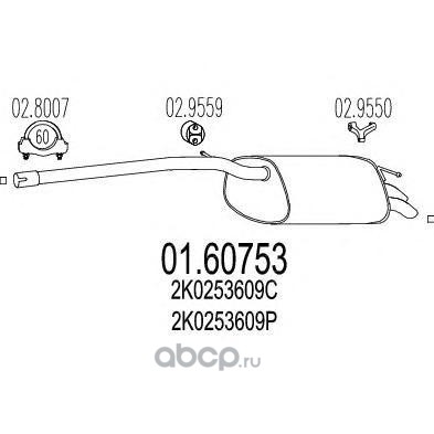 | MTS | 0160753 | Глушитель выхлопных газов конечный | ||