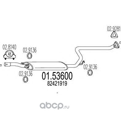 | MTS | 0153600 | Средний глушитель выхлопных газов | ||