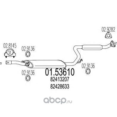 | MTS | 0153610 | Средний глушитель выхлопных газов | ||
