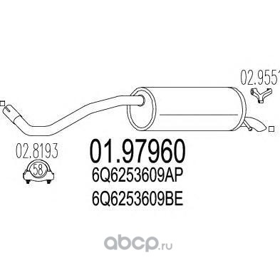 | MTS | 0197960 | Глушитель выхлопных газов конечный | ||