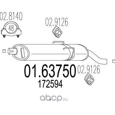 | MTS | 0151630 | Средний глушитель выхлопных газов | ||