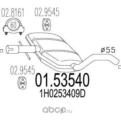 | MTS | 0153540 | Средний глушитель выхлопных газов | ||