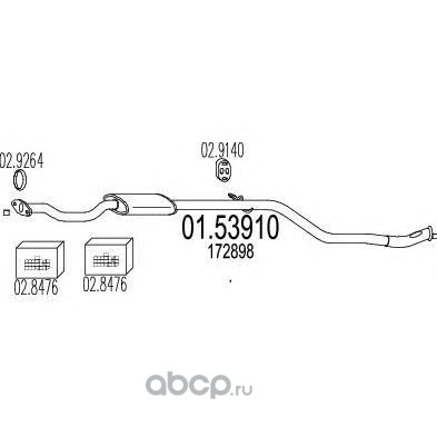 | MTS | 0153910 | Средний глушитель выхлопных газов | ||