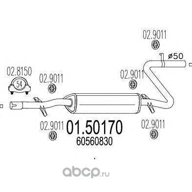 | MTS | 0154440 | Средний глушитель выхлопных газов |