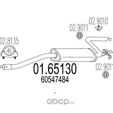 | MTS | 0165130 | Глушитель выхлопных газов конечный | ||