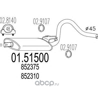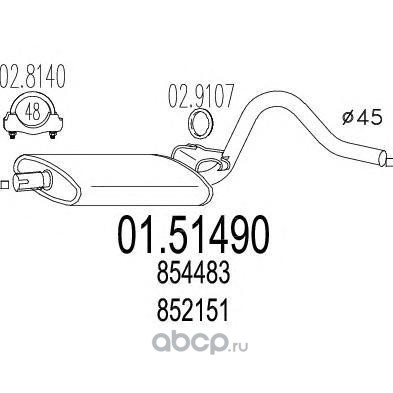 | MTS | 0151490 | Средний глушитель выхлопных газов | ||