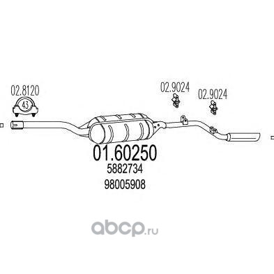 | MTS | 0152910 | Средний глушитель выхлопных газов | ||