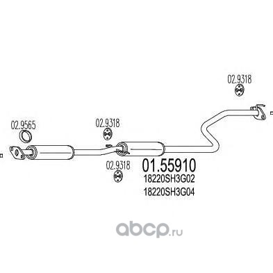 | MTS | 0155910 | Средний глушитель выхлопных газов | ||