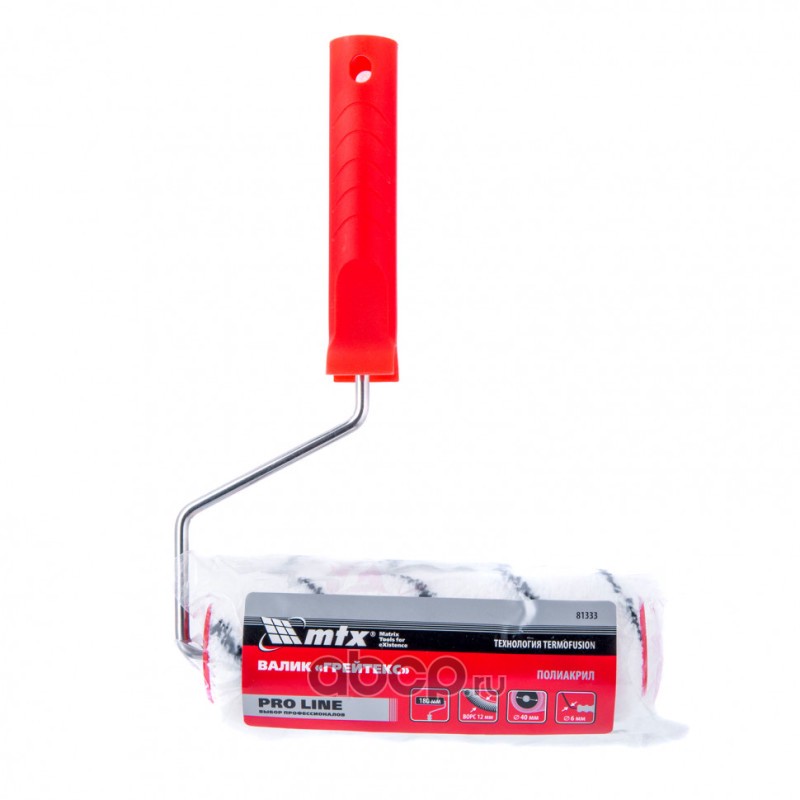 Валик "Грейтекс" Pro Line, 180 мм, ворс 12 мм, D 40 мм, D ручки 6 мм, полиакрил MTX