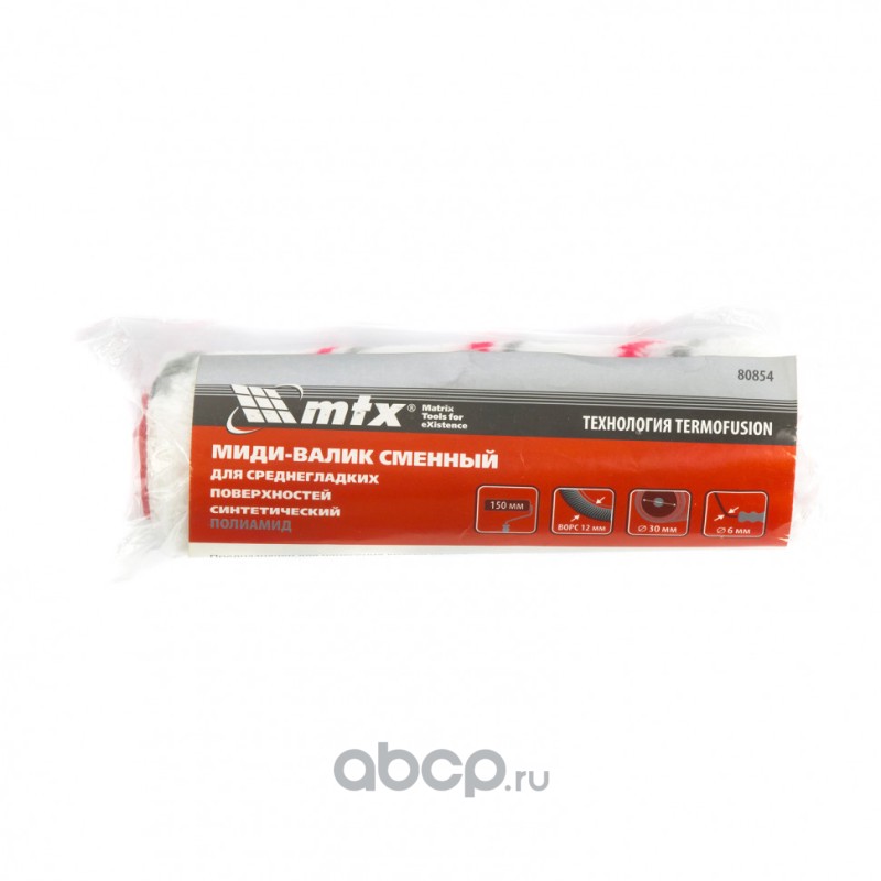 Миди-валик сменный для среднегладких поверхностей синтетический, 150 мм, ворс 12 мм, D 30 мм, D ручки 6 мм, полиамид MTX