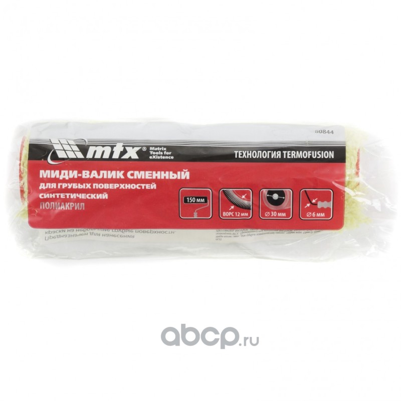 Миди-валик сменный для грубых поверхностей синтетический, 150 мм, ворс 12 мм, D 30 мм, D ручки 6 мм, полиакрил MTX