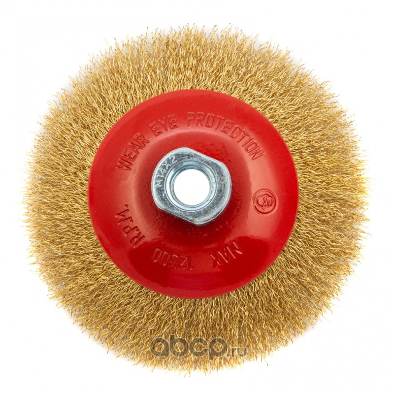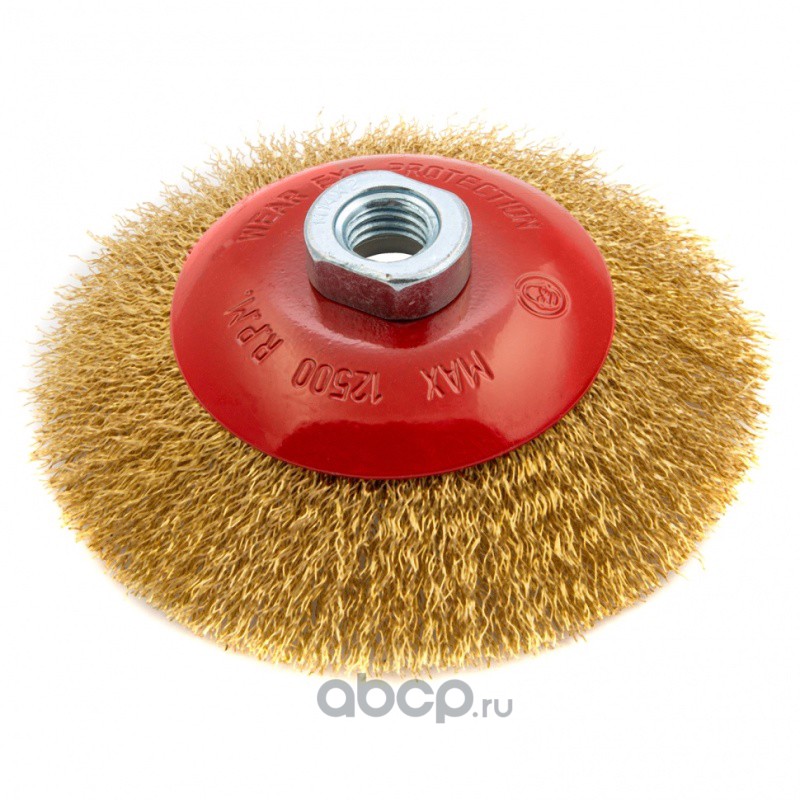 Щетка для УШМ, 125 мм, М14, "тарелка", латунированная витая проволока Matrix