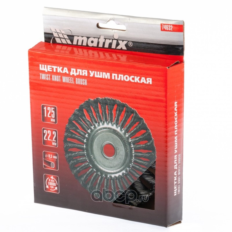 Щетка для УШМ 125 мм, посадка 22.2 мм, плоская, крученая проволока 0.5 мм Matrix