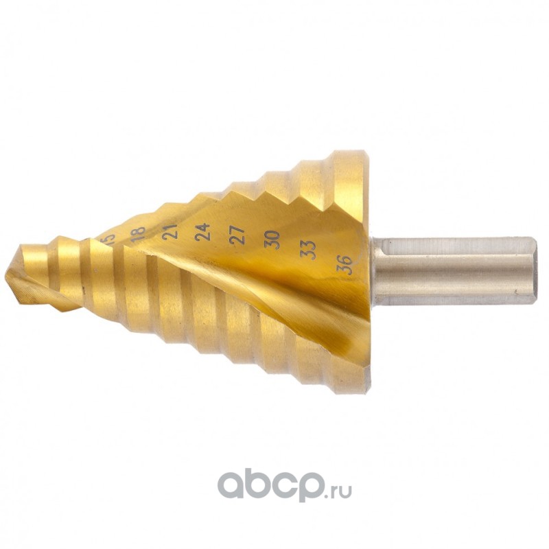 Сверло ступенчатое, 9-12-15-18-21-24-27-30-33-36 мм, HSS, спиральный профиль, трехгранный хвостовик Matrix