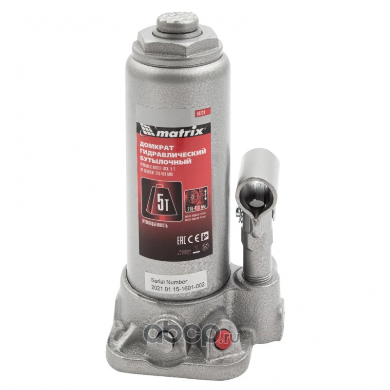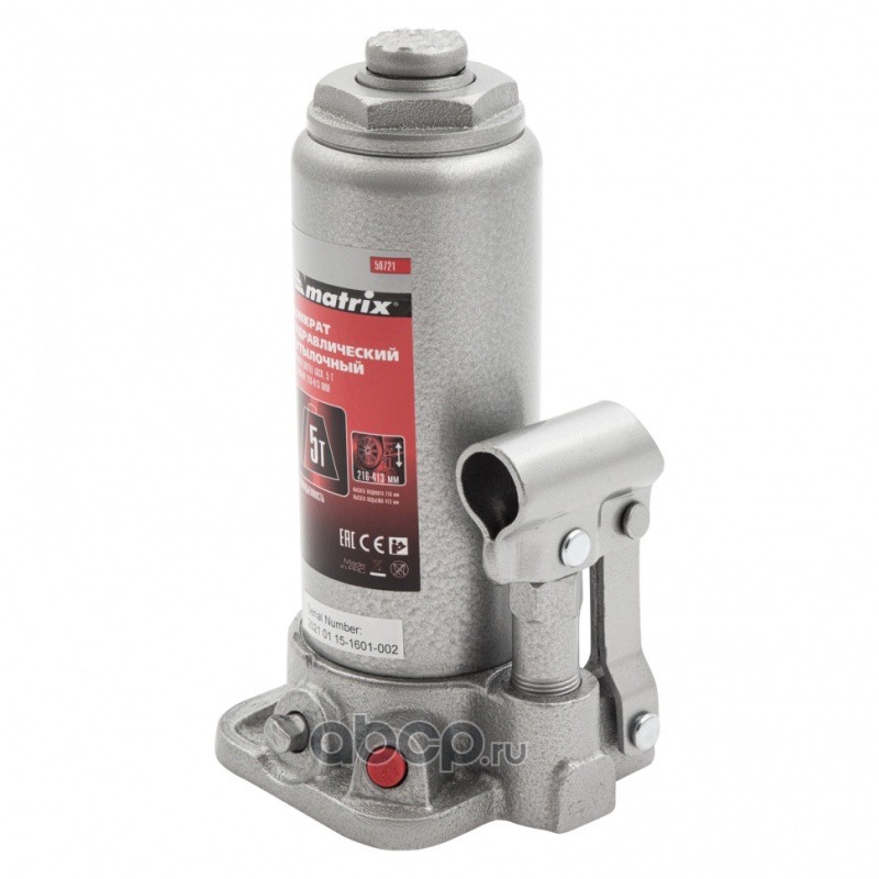 Домкрат гидравлический бутылочный, 5 т, высота подъема 216-413 мм Matrix