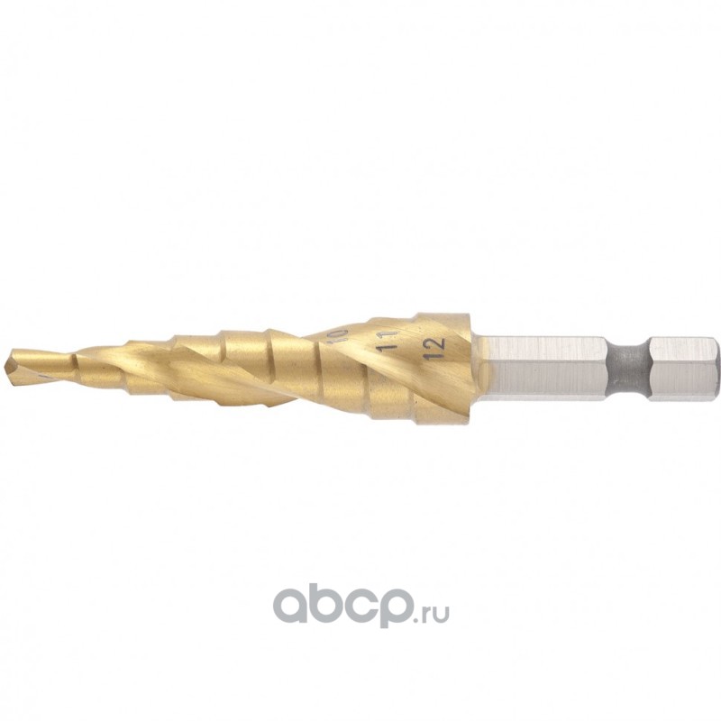 Сверло ступенчатое 4-5-6-7-8-9-10-11-12 мм, HSS, спиральный профиль, шестигранный хвостовик Matrix