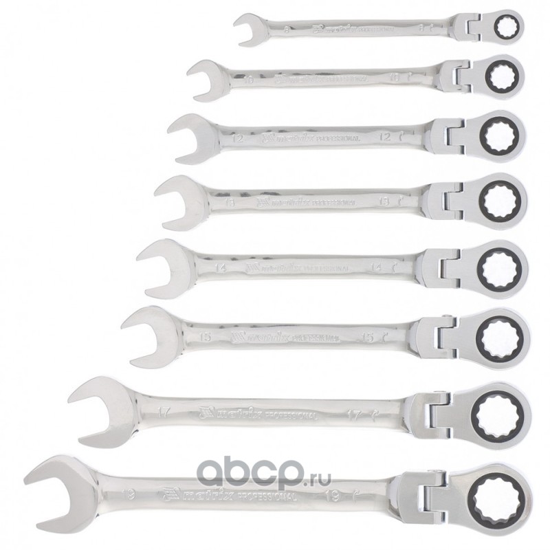 Набор ключей комбинированных, трещеточных шарнирных 8 шт Matrix