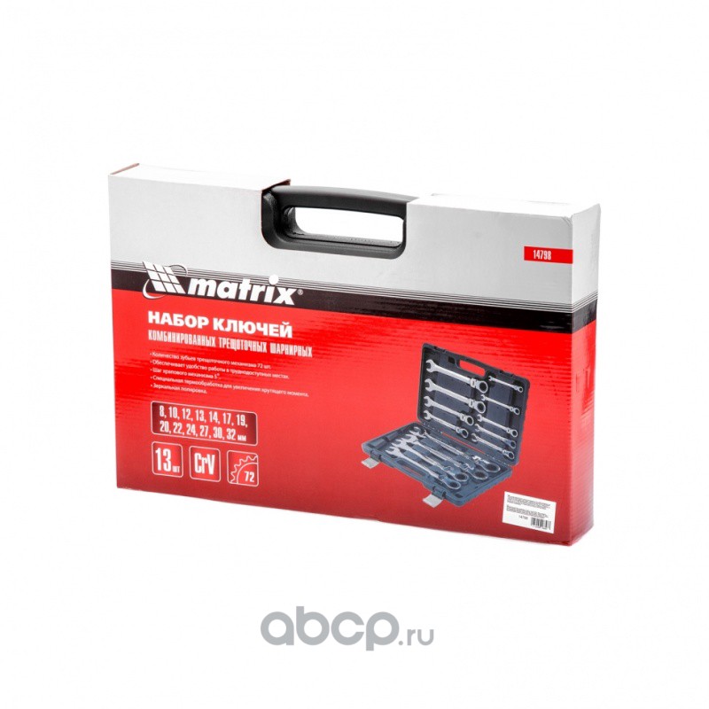 Набор ключей комбинированных, трещоточных шарнирных 13 шт. Matrix