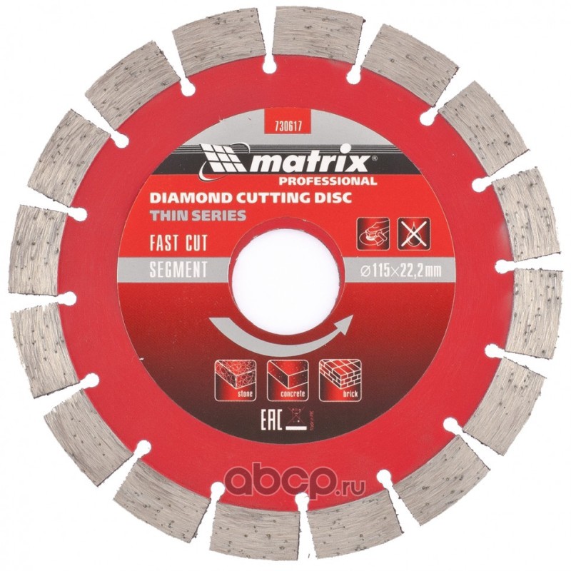 Диск алмазный, отрезной сегментный, 115 х 22.2 мм, тонкий, сухая резка Matrix Professional