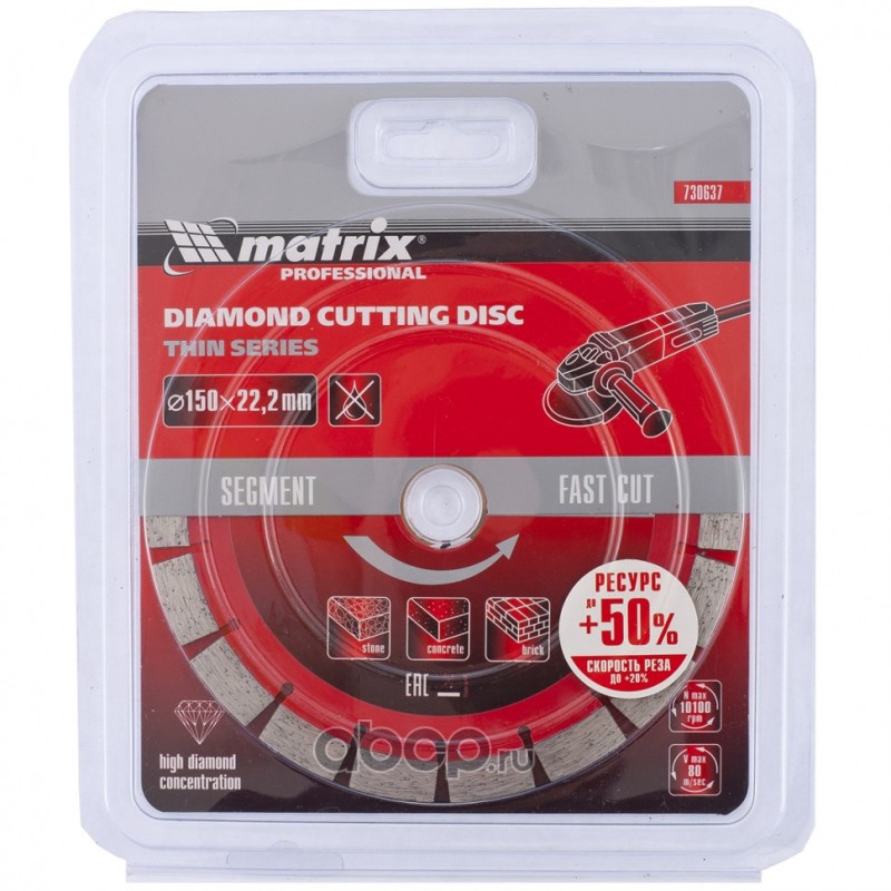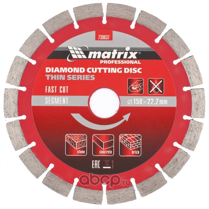 Диск алмазный, отрезной сегментный, 150 х 22.2 мм, тонкий, сухая резка Matrix Professional