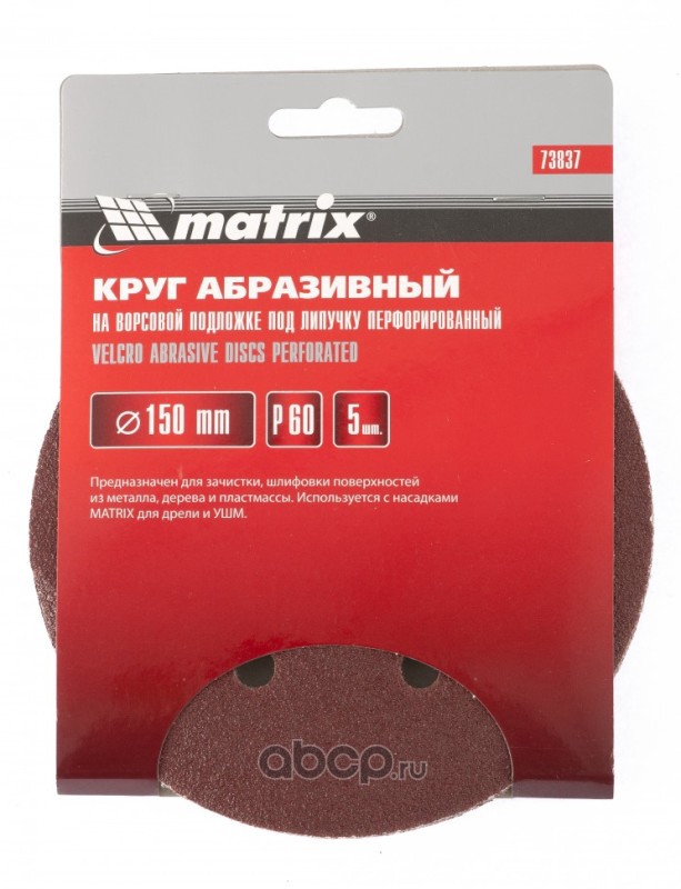 Круг абразивный на ворсовой подложке под "липучку", перфорированный, P 500, 150 мм, 5 шт Matrix