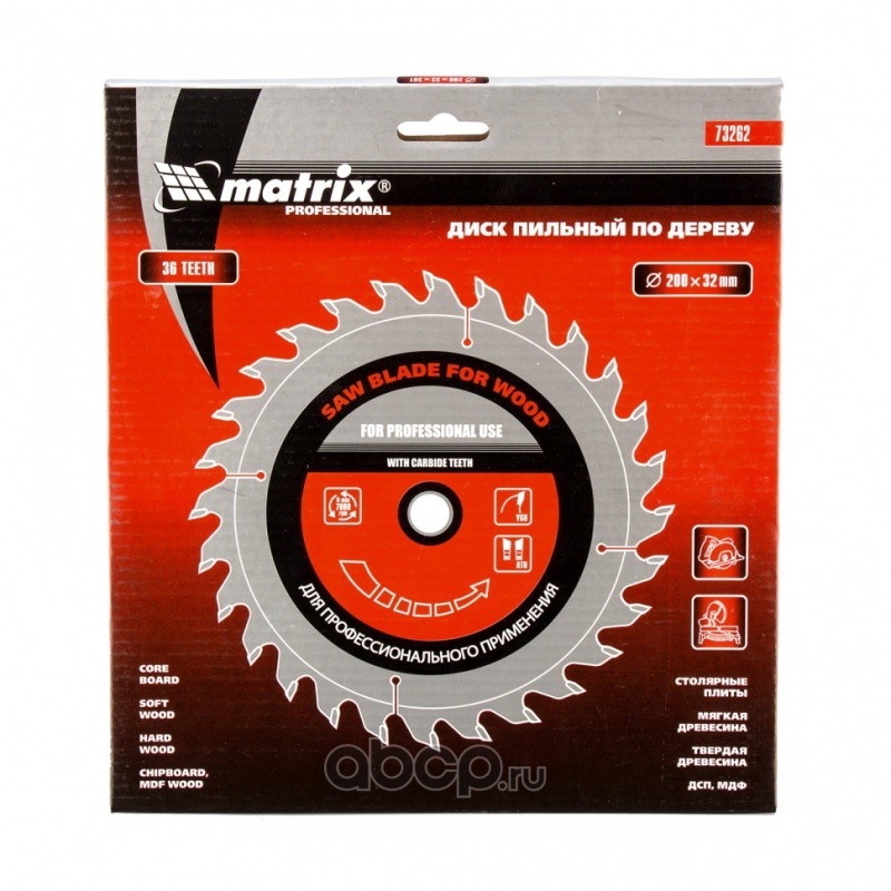 Пильный диск по дереву, 200 х 32 мм, 36 зубьев, кольцо 30/32 Matrix Professional