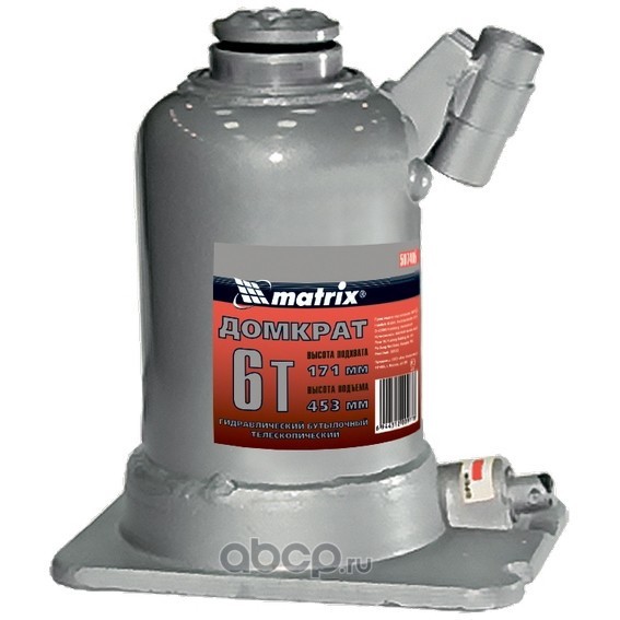 Домкрат гидравлический бутылочный телескопический, 6 т, подъем 171-453 мм Matrix