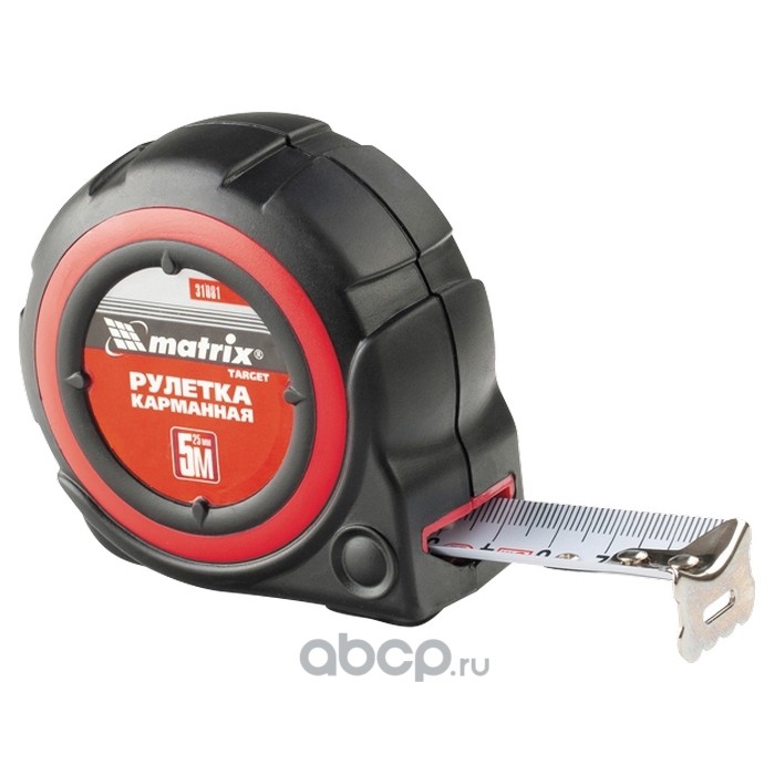 Рулетка Target, 5 м х 25 мм, автоматическая фиксация, обрезиненный корпус Matrix