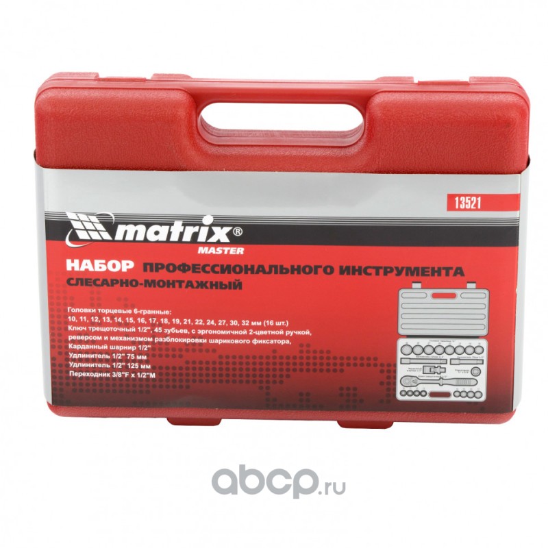 Набор слесарно-монтажный с квадратом 1/2, 21 предмет Matrix