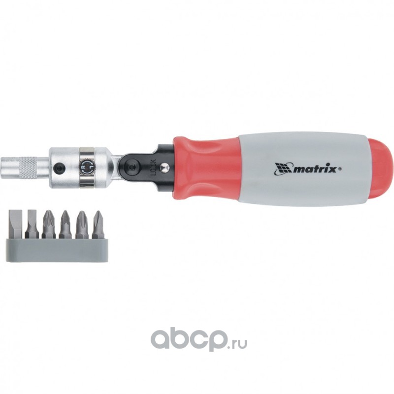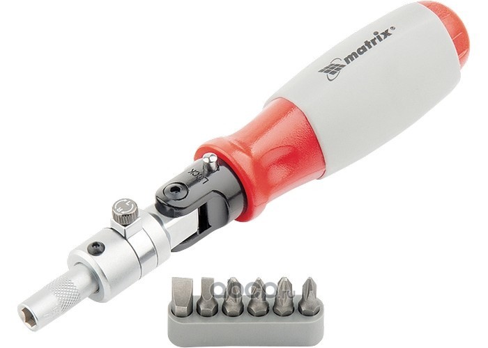 Отвертка реверсивная, поворотная головка, набор бит, CrV, 6 шт Matrix