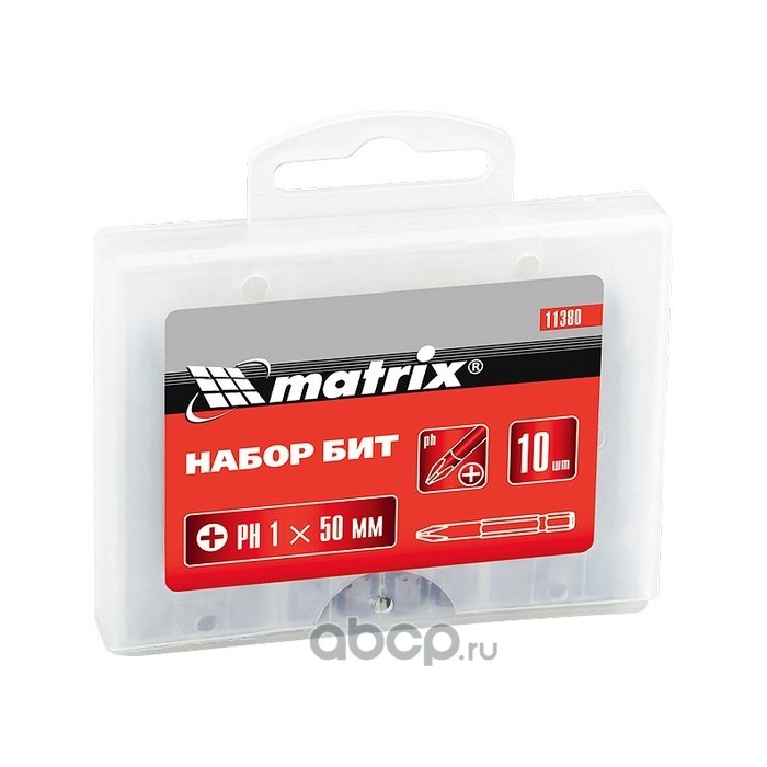 Бита PH1 х 50 мм, сталь 45Х, 10 шт, пластиковый бокс Matrix