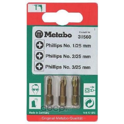 | Metabo | 631560000 | Набор бит PH 1/2/3 х 25 мм Metabo (3 шт.) | ||