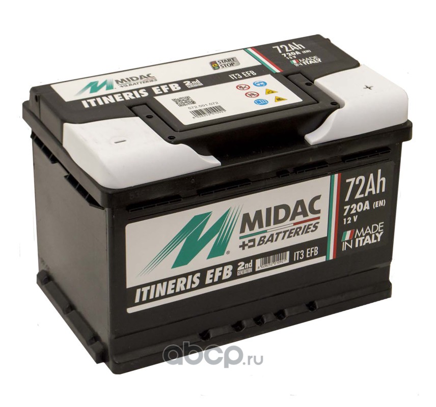 | Midac | 572501072 | Батарея аккумуляторная 72А/ч 720А обратная полярн. стандартные (Европа) клеммы | ||